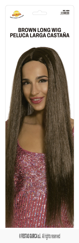 Krásná dámská paruka s rovnými hnědými vlasy. Zobrazit více