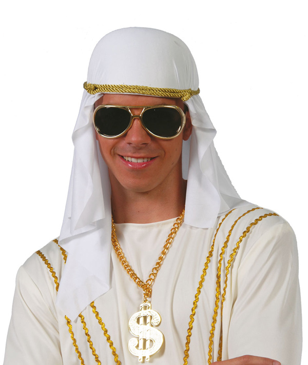 Arabský bílý šátek se zlatou aplikací. Zobrazit více