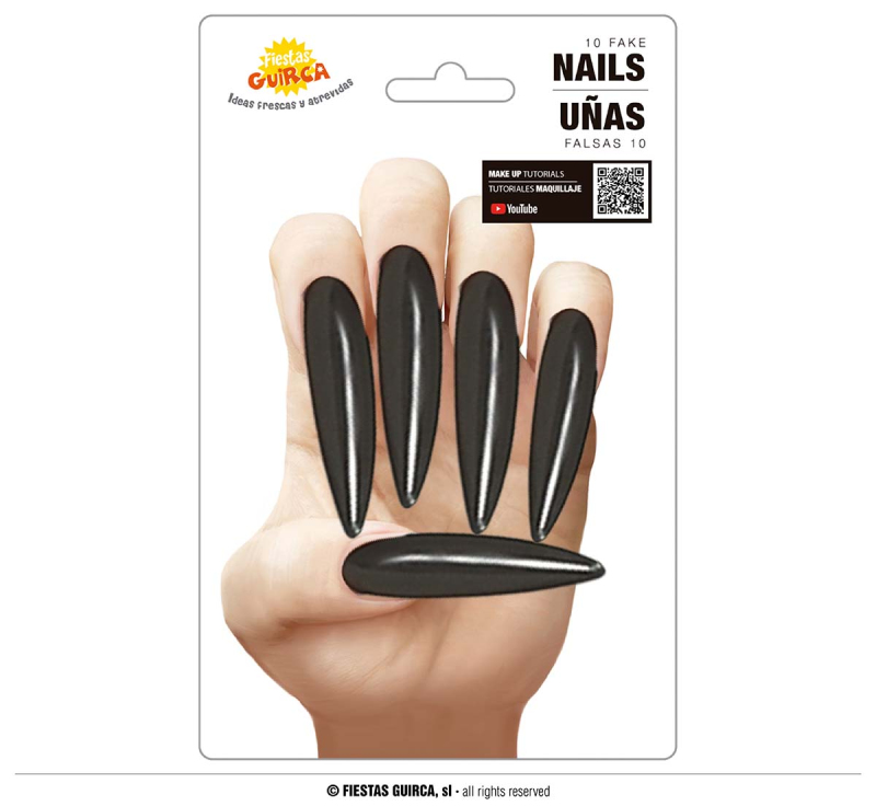 Doplnky na halloween k vašim kostýmom. Čarodějnické nehty černé - 10 ks Zobrazit více