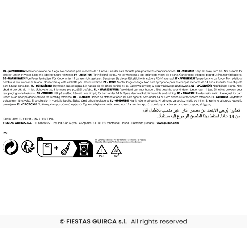 | Výrobca: | Fiestas Guica - Španělsko |