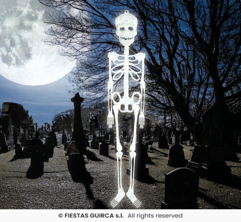 Doplnky na halloween k vašim kostýmom. Fluoreskující plastová kostra 75cm. Zobrazit více