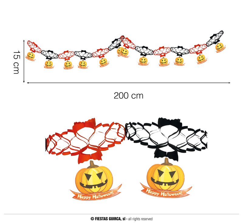 Halloweenská papírová girlanda s motivem dýně délka 200 cm.