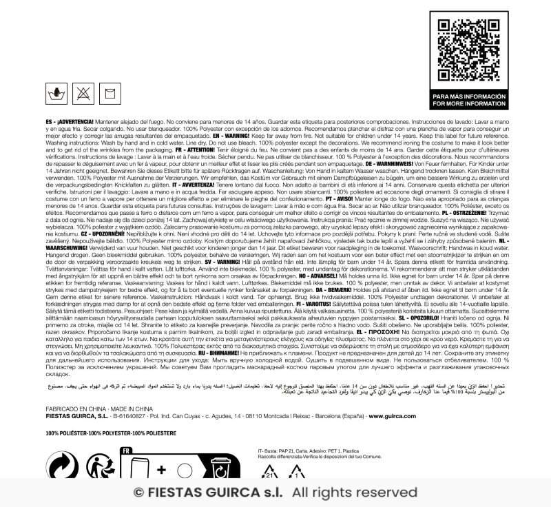 | Výrobca: | Výrobca: Fiestas Guica - Španělsko |