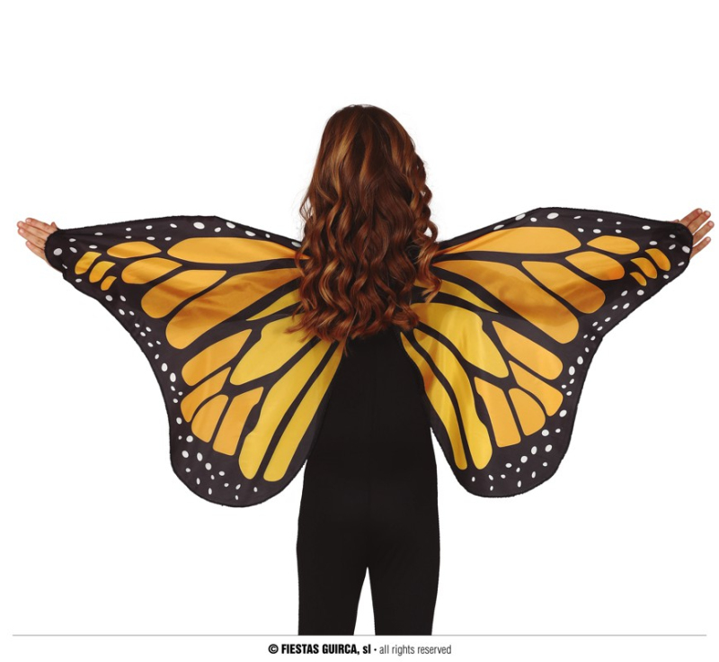 Krásna žltá látková krídla 110 x 50cm s uchytením na ramenách a prstoch. Zobrazit více