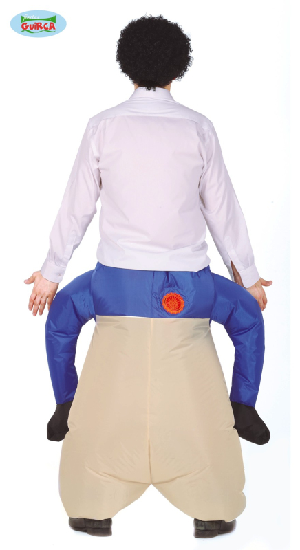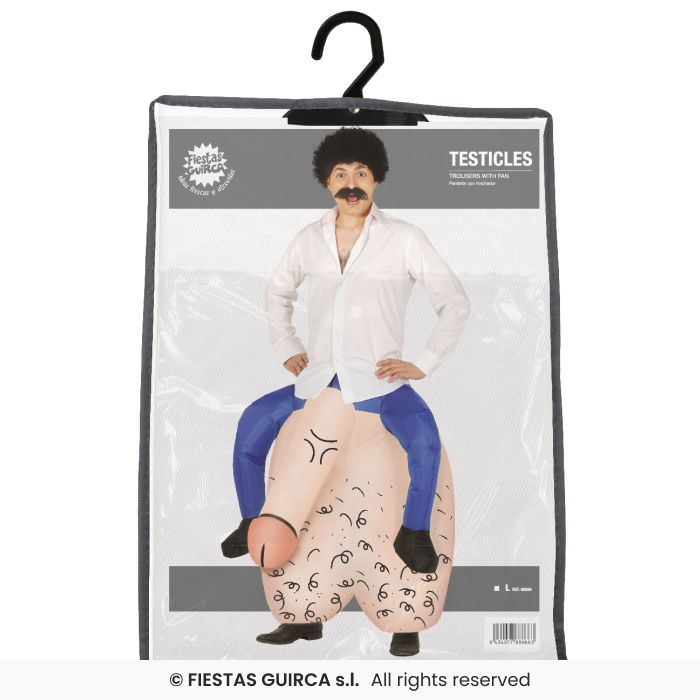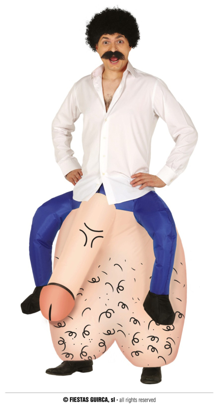 Nafukovací kostým muža sediaceho na pánskom prirodzenie. Kostým obsahuje iba spodný diel, košele nie je súčasťou. Kostým je vybavený ventilátorom na batérie a je priebežne dofukovanie. Zobrazit více