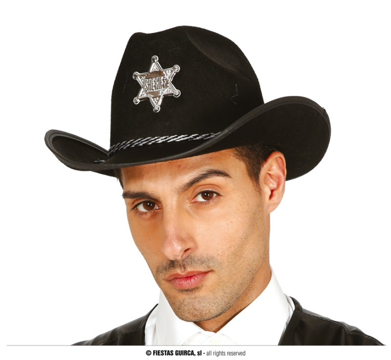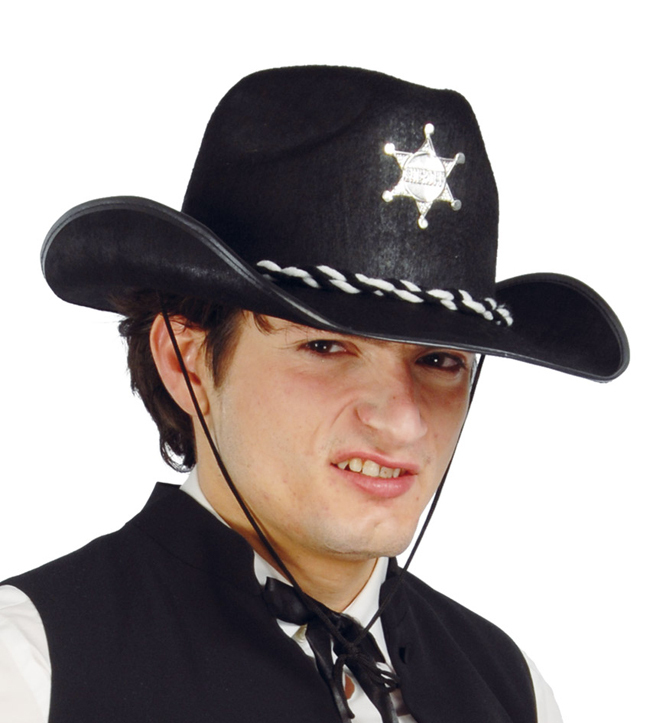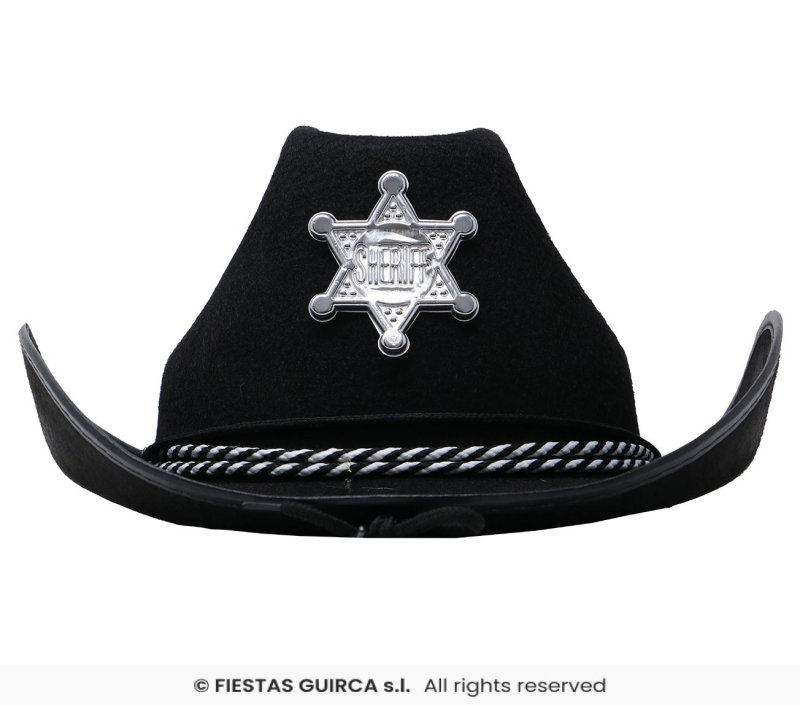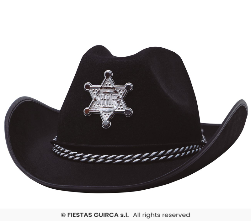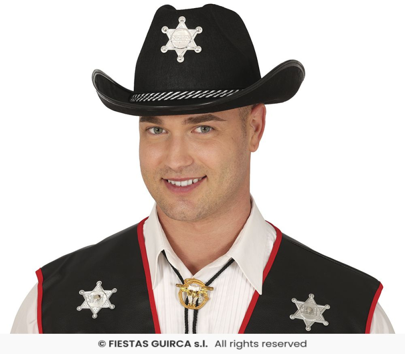Čierny kovbojský klobúk s hviezdou a endlom. Zobrazit více