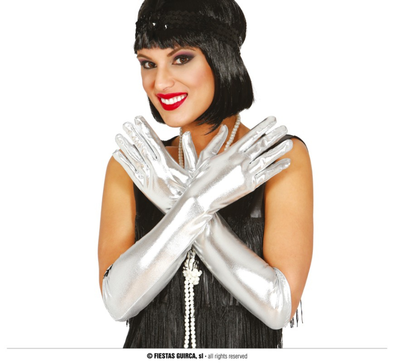 Dámské dlouhé stříbrné rukavice vhodné vhodné na více příležitostí.