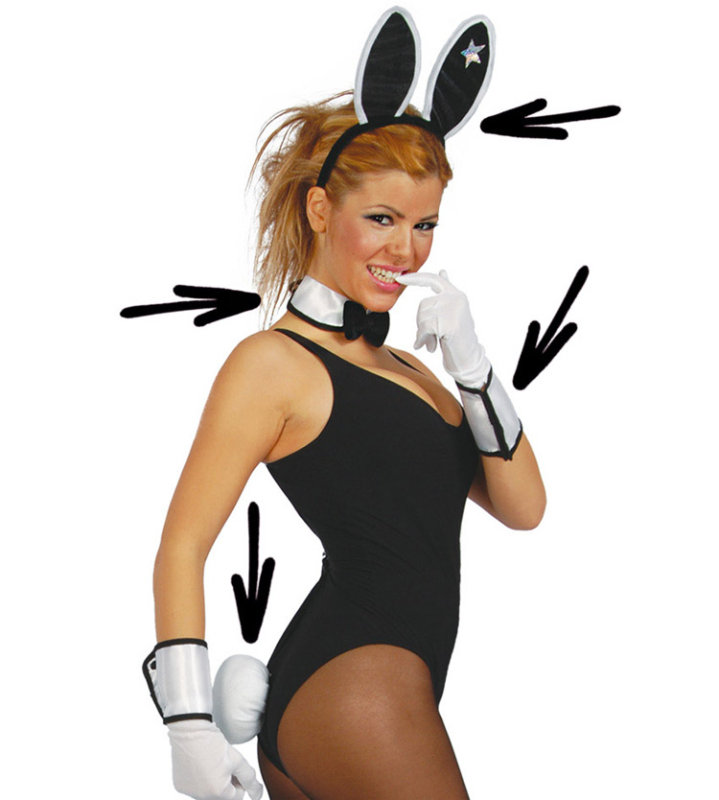 Set playboy - ouška na sponě, ocásek, manžety a motýlek s páskou.