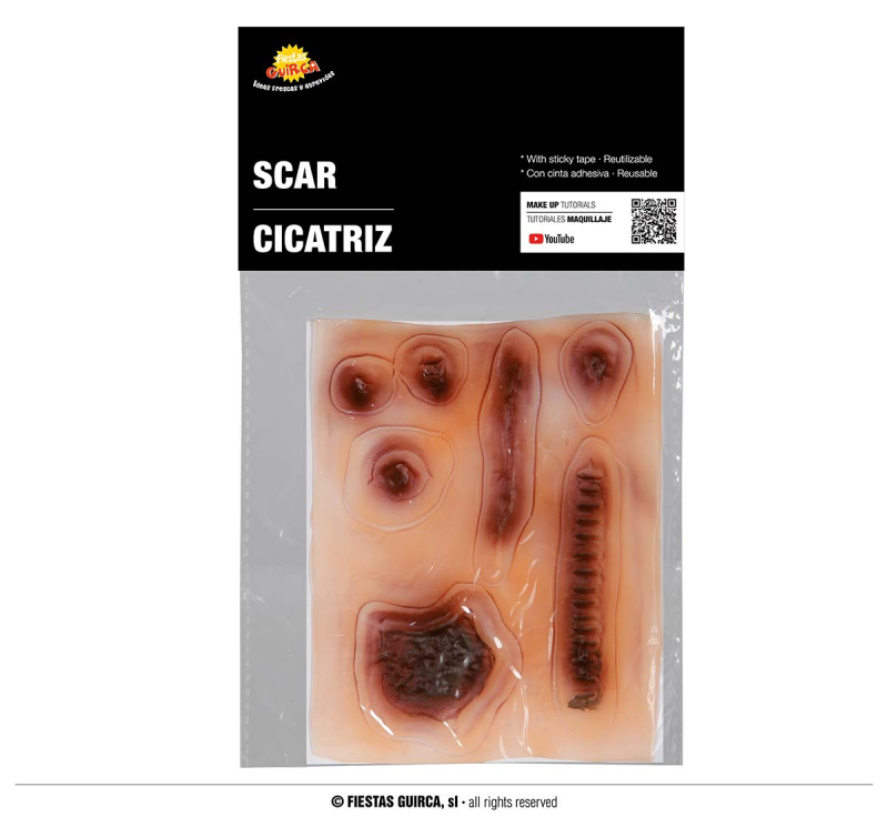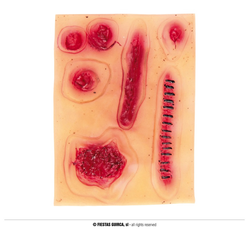 Imitace několika jizev - průstřel, spálenina, sešití...