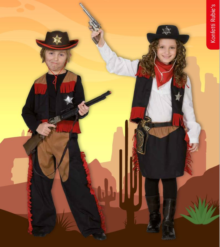 Detský kostým kovboja tvorený nohavicami a vestou s hviezdou . Klobúk a puška nie sú súčasťou kostýmu Zobrazit více