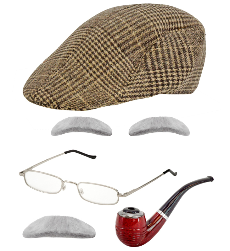 Čiapka, obočie, fúzy, okuliare a fajka. Zobrazit více
